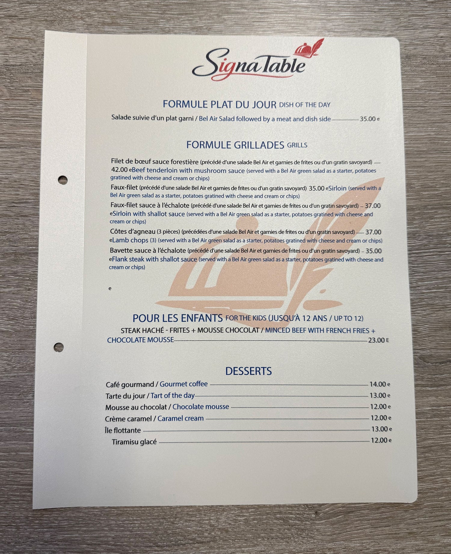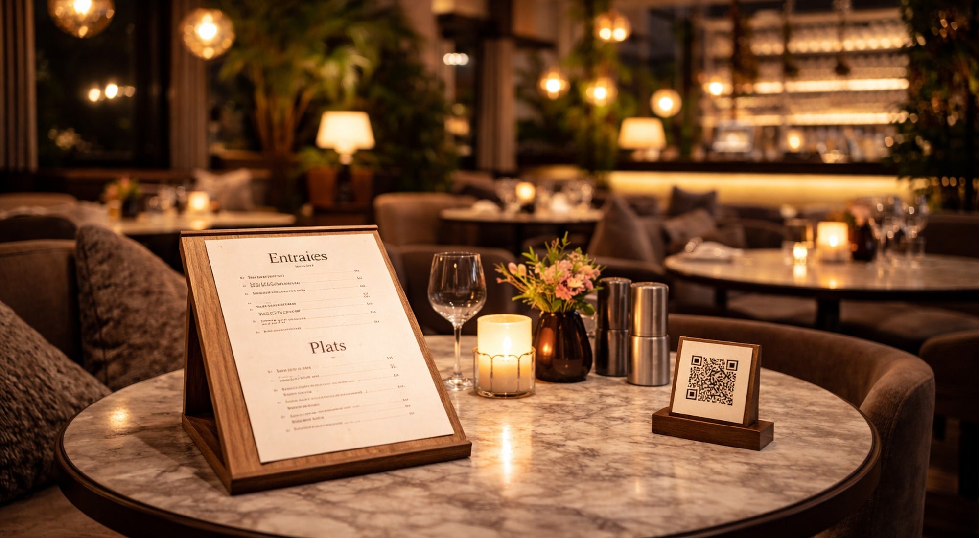 Porte-menus + inserts + QR table.